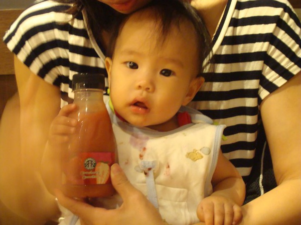 汝汝姨請莎莎喝鮮果昔,莎莎超愛喝~