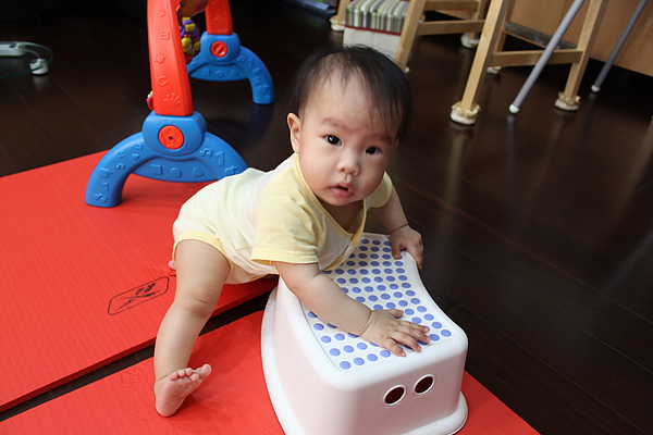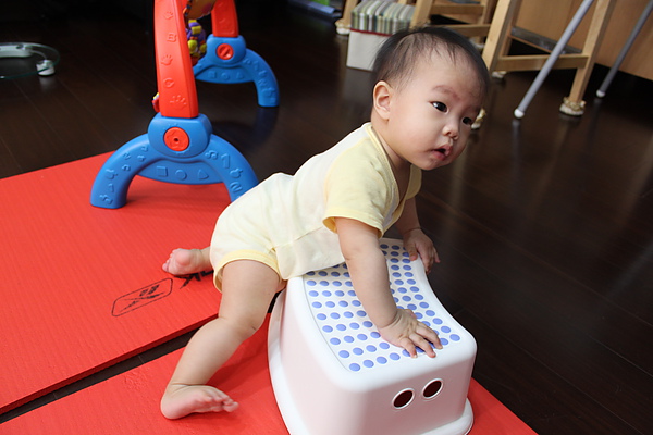 1.爬上小書房玩了,剛開始幾次從小書房下來的時候會撞到頭大哭,現在可以順利的爬下來不哭哭了。