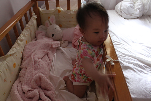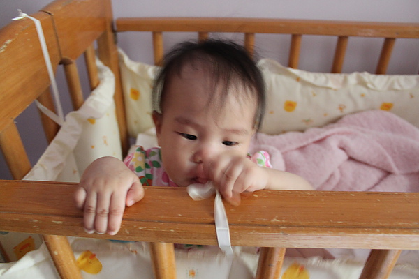 8.七月五號分房了,第一個禮拜晚上還是會哭泣,慢慢的,莎莎的睡眠品質愈來愈好,現在可以一ㄧㄚㄚ的自己睡著,從晚上的九點睡到早上八點。