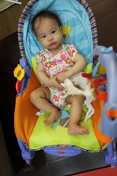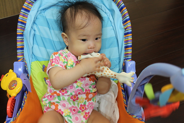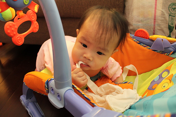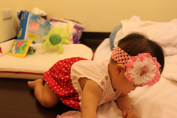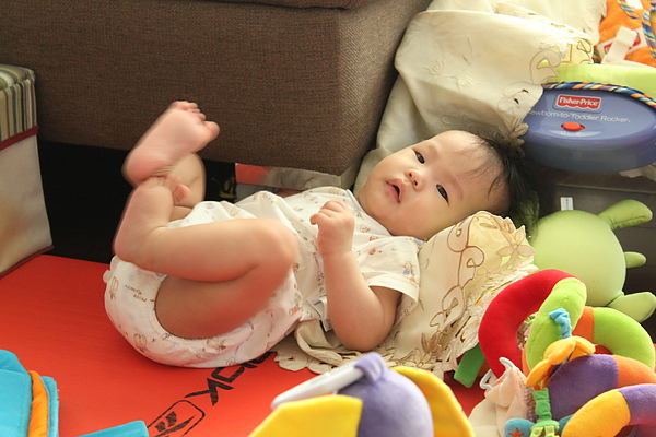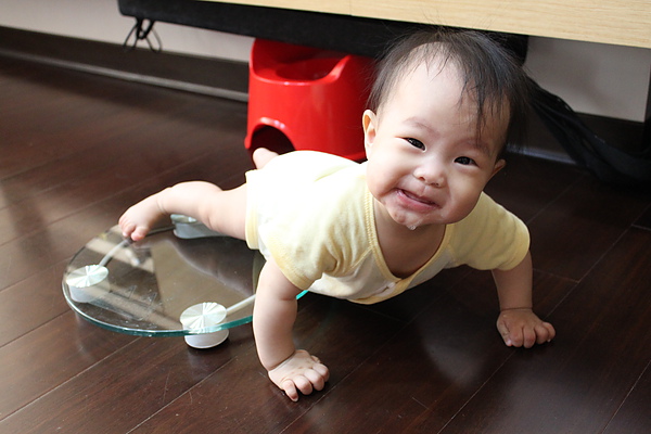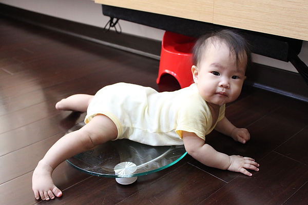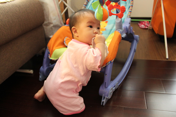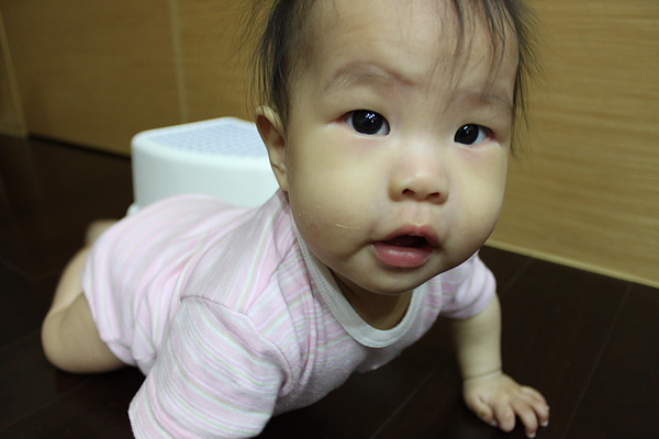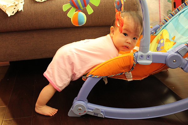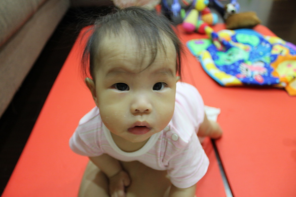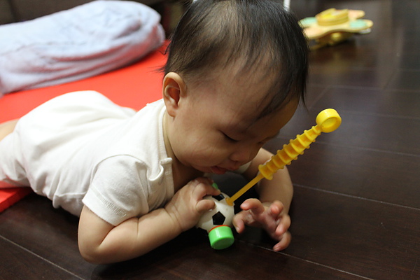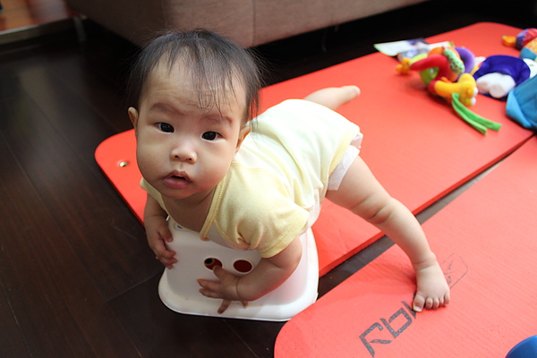 2. 可以邊爬的時候坐起來了喔,不過還是比較喜歡趴著玩玩具,因為可以快速爬爬爬。