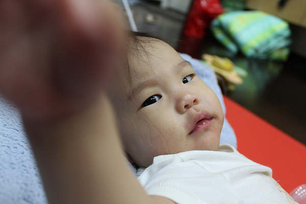 6.第一次生病小感冒,有點咳嗽跟流鼻水,到了淡水馬偕看黃醫生,藥到病除,兩天就好了,拔比媽咪鬆了一口氣。