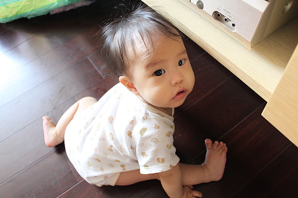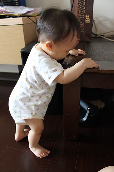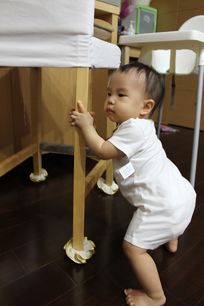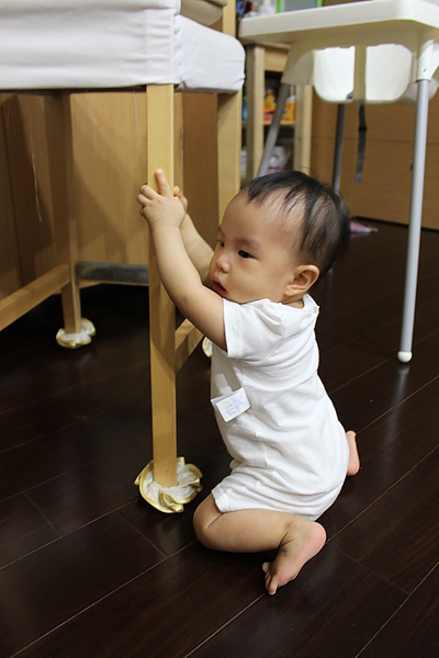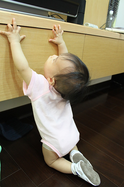 站起來後,會自己慢慢的坐下,媽媽就不用擔心莎莎撞到頭~~