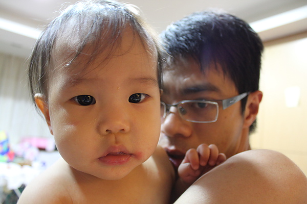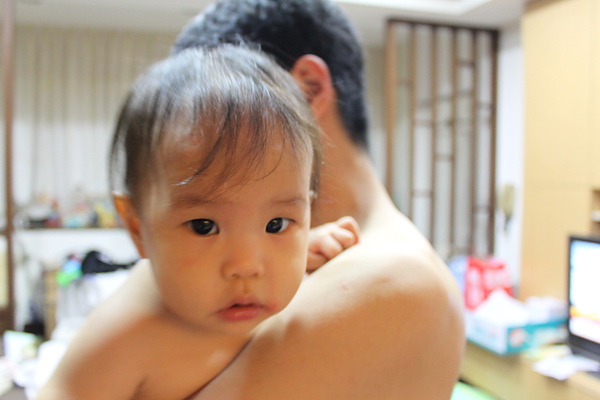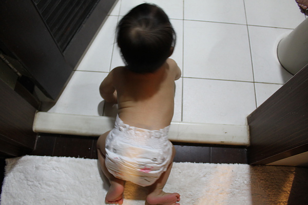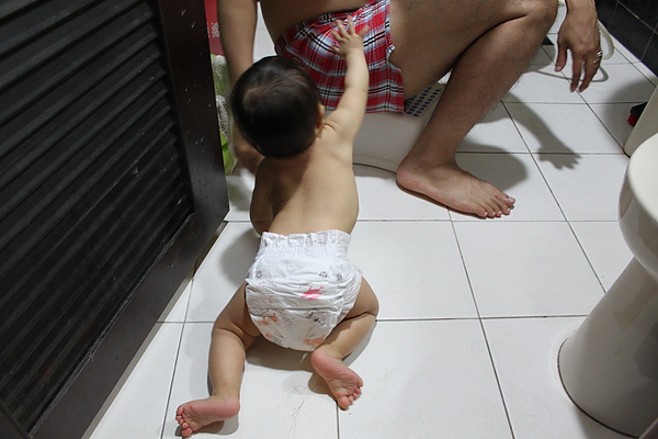 莎莎自己爬去浴室找拔拔洗澡,是乖寶貝~~