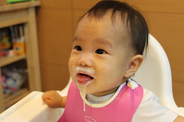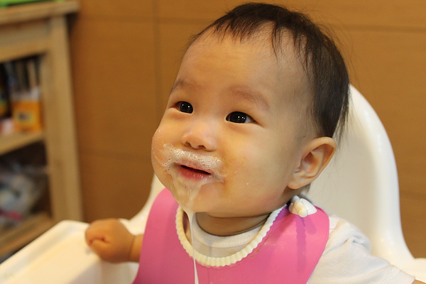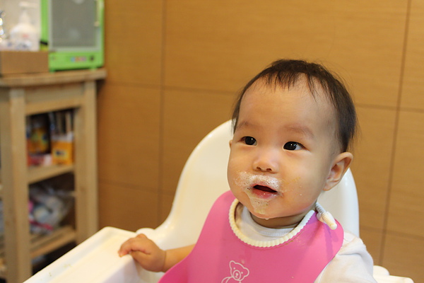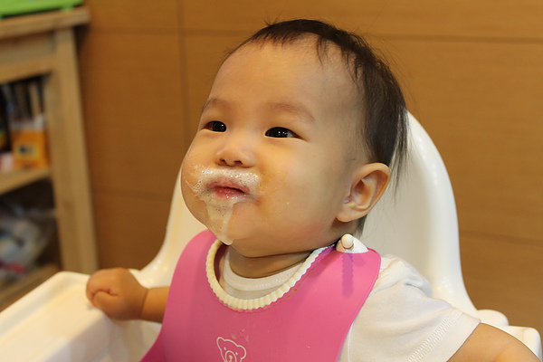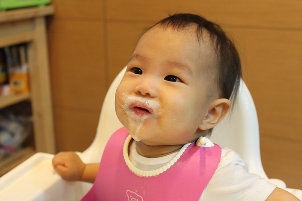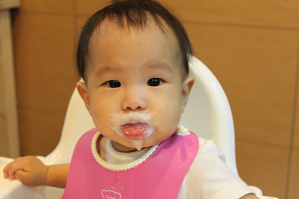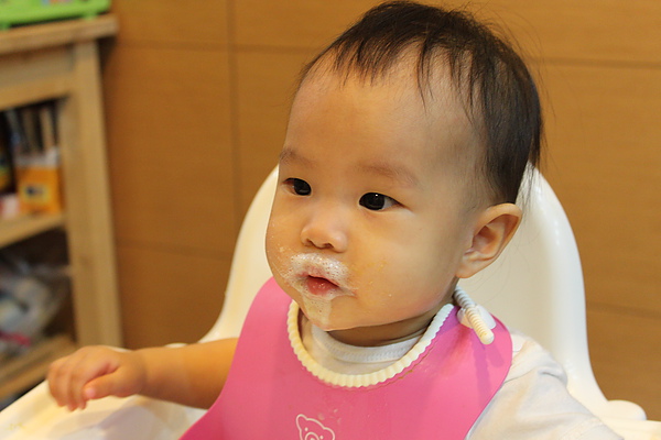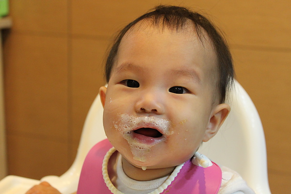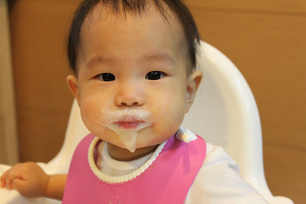 副食品每天都吃的臉髒髒,媽媽都隨便亂擦,拔拔才會擦的很乾淨~~