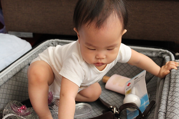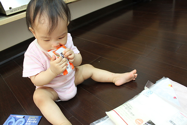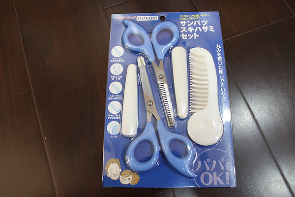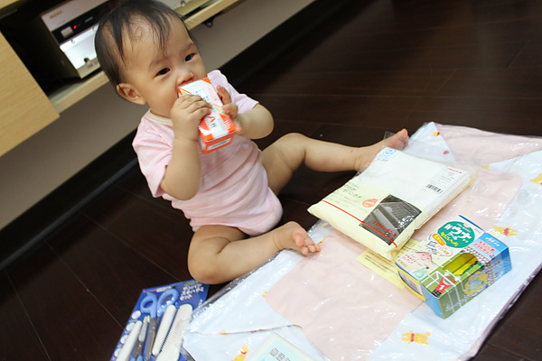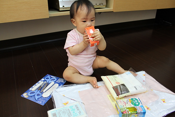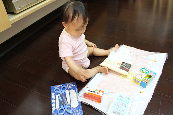 好心的媽咪從日本扛回來的戰利品,莎莎的充氣浴盆、日本製紗布巾、蚊子藥、拔拔也上手的剪髮剪刀,媽媽的白雪之詩跟拔拔的感冒藥