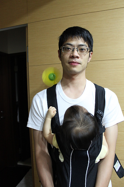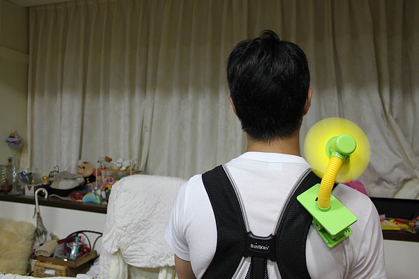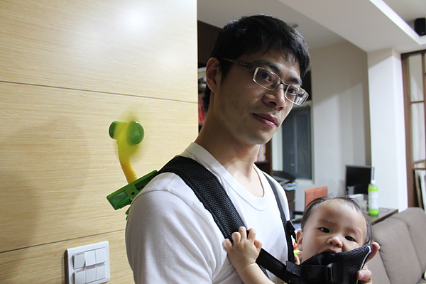 電風扇除了夾推車,夾背巾也超好用,一次涼兩個~~哈哈