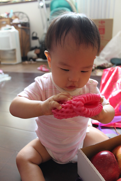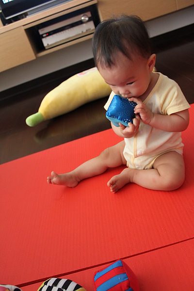 終於可以咬鞋子了~~
