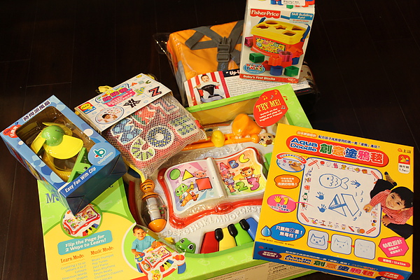 推車用電風扇、洗澡玩具、塗鴉毯、積木組、跟綁寶貝吃飯的東西