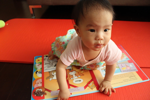 在costco買的童書,有五個觸摸書的標籤,又有簡單的英文單字,紙質滿硬的,莎莎咬不壞,買來跟小莎莎繞英文~~
