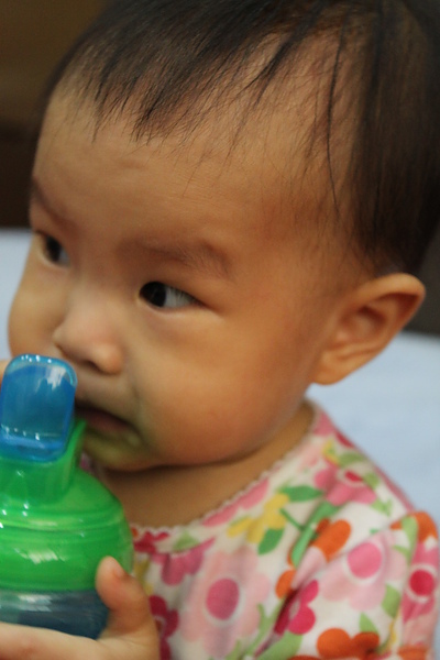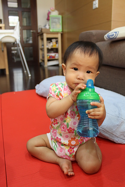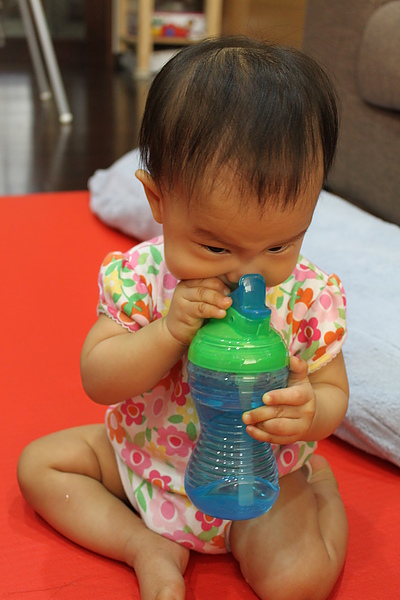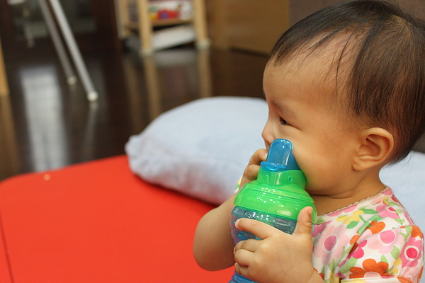 munchkin吸管杯拿出來給莎莎練習喝~