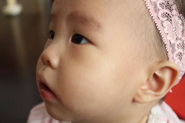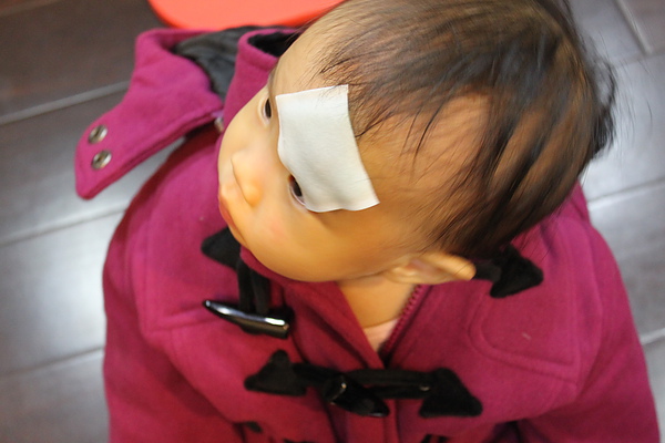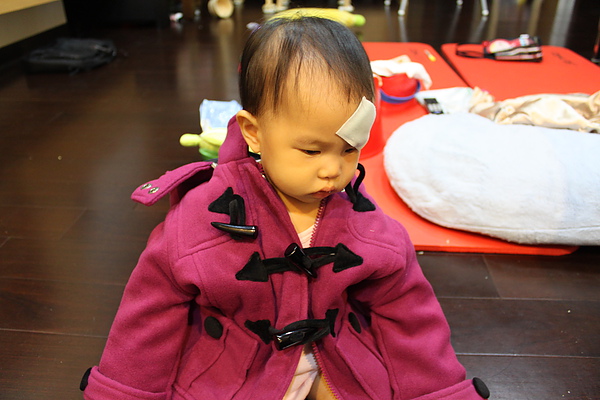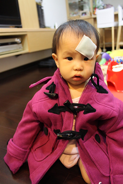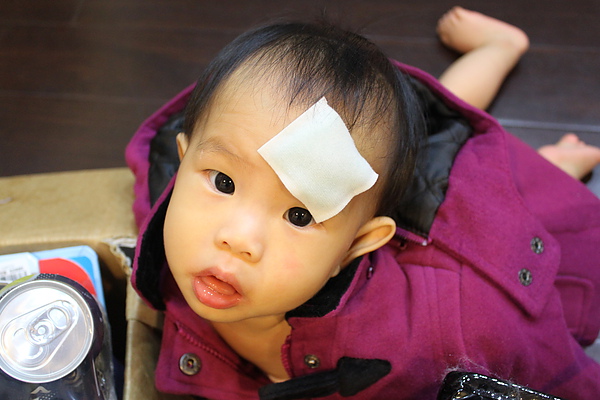莎莎無辜的臉~頭上撞了一大包,用退熱貼冰敷中~