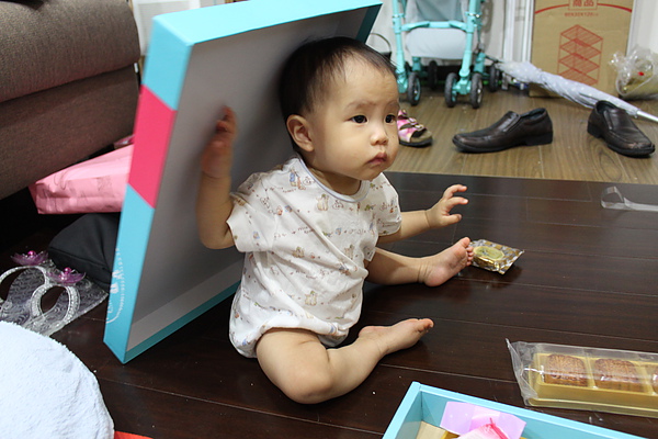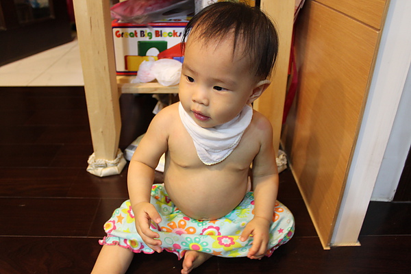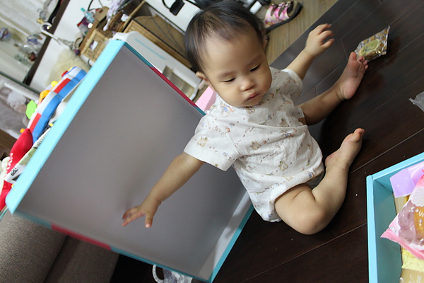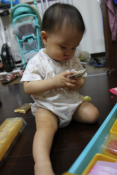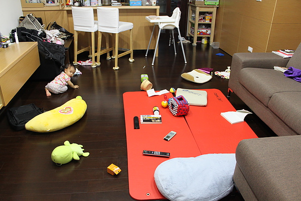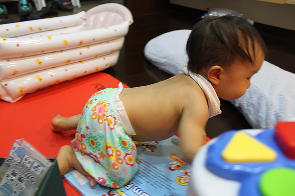 2.一個人在房間也可以玩一陣子不哭哭,現在也會自己去探索家裡發現新世界,會爬進嬰兒床底找玩具再爬出來