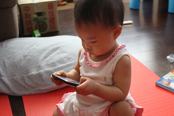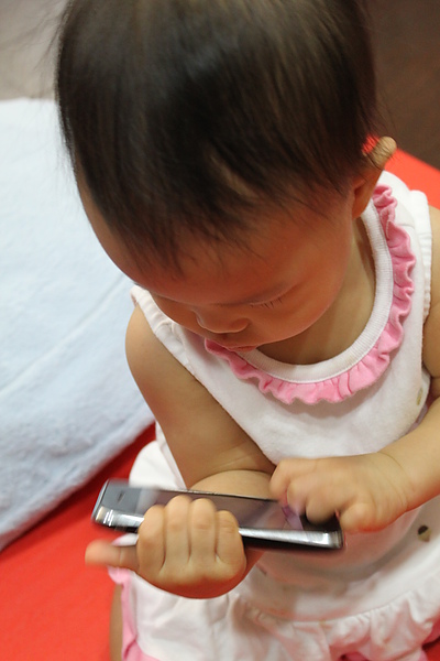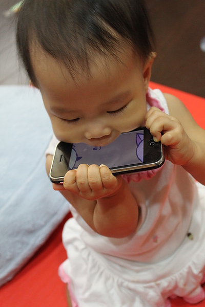 一開始看phonebook只會啃它,現在會跟大人一樣點點點了(但是還是要啃)~