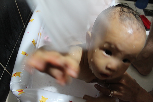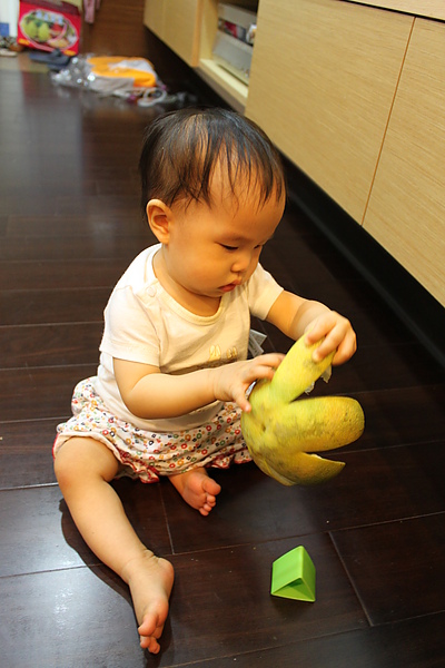 4.表情很豐富,開心的大笑及很"張"的大哭。開心的時候雙手會合起來拍拍了~~超古錐,也很喜歡搖晃有聲音的物品,例如小鈴鼓。