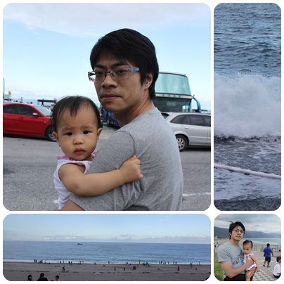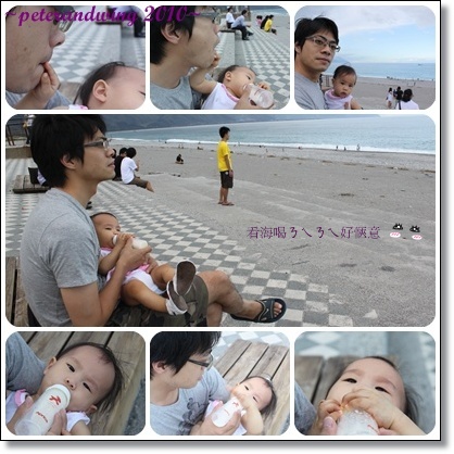 下車後,當然是放風給寶貝喝ㄋㄟㄋㄟ,拔拔抱著小情人看海喝奶,真是幸福呢~~
