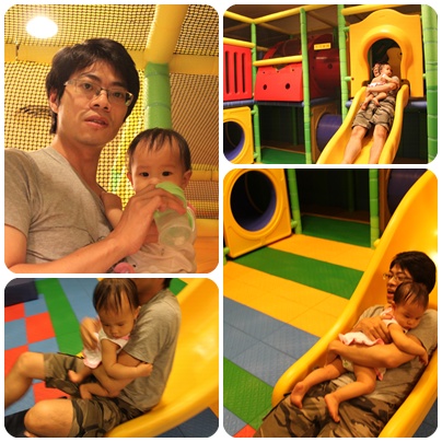 回飯店後,因為美崙飯店有兒童遊戲室,帶莎莎去玩玩,可能因為莎莎還小,一碰到地就不開心,一定要拔拔抱抱陪玩,所以看起來應該是拔拔玩的比較開心喔~