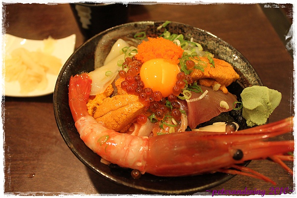 爸爸的無敵海鮮蓋飯,因為拔拔不吃生蠔,所以手掌大的生蠔換成了海膽,看起來超澎湃的~~