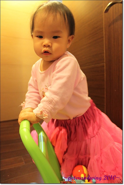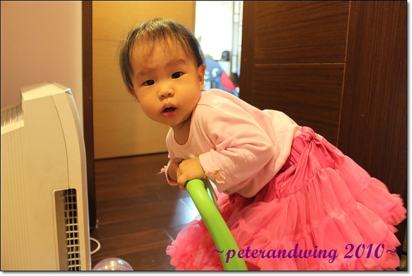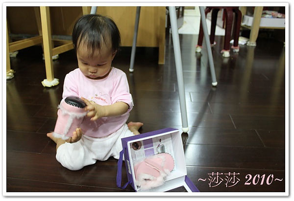 莎莎很乖,三不五時就拿滾輪滾地板的髒屑屑,還會挑餐椅下最髒的地板滾,以後掃地工作給莎莎,洗碗工作給菲菲啦~~