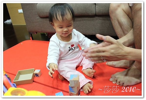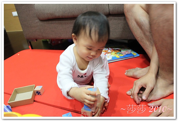 無印良品的積木蠻好玩的,莎莎也開始自己堆積木了~