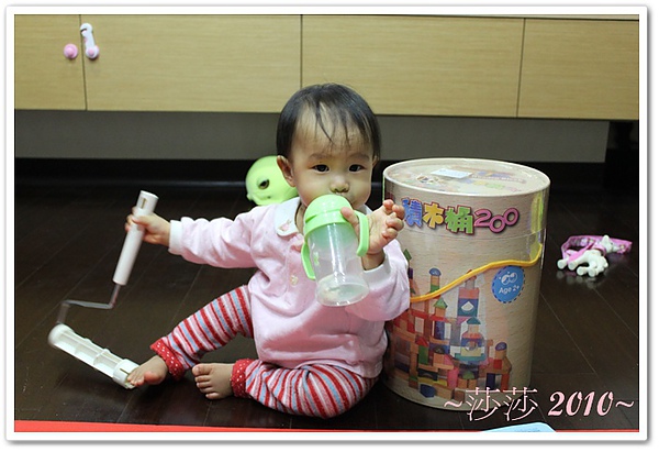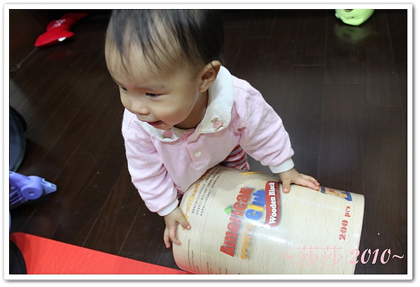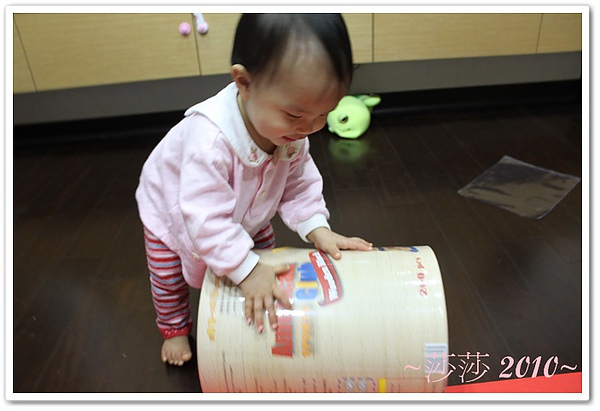 這一筒還頗重的,小莎莎可以把它翻到再滾滾袞,看來是小小神力女超人~