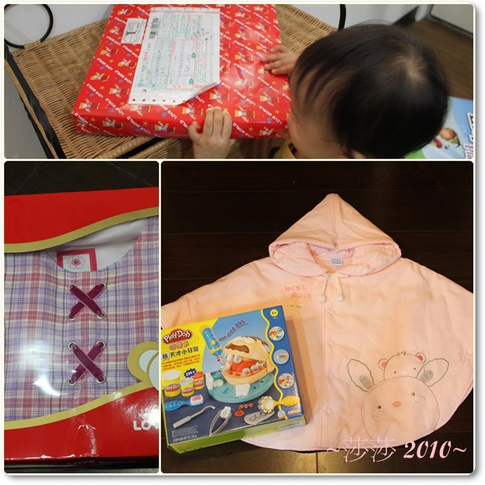 莎莎禮物大豐收,謝謝阿姨們疼愛莎莎,多了好多漂亮的衣服喔^^