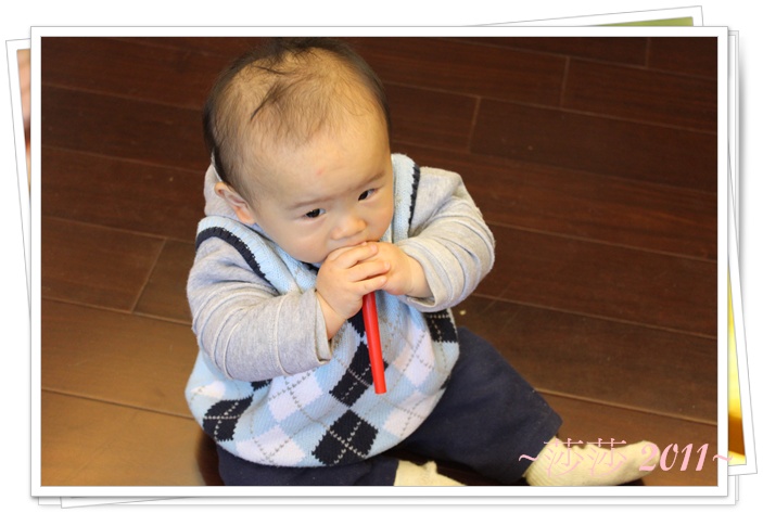 不知道為什麼?莎莎常喜歡倒過來玩學步車??