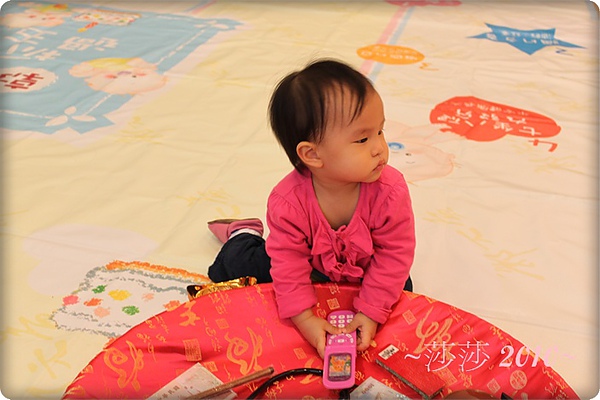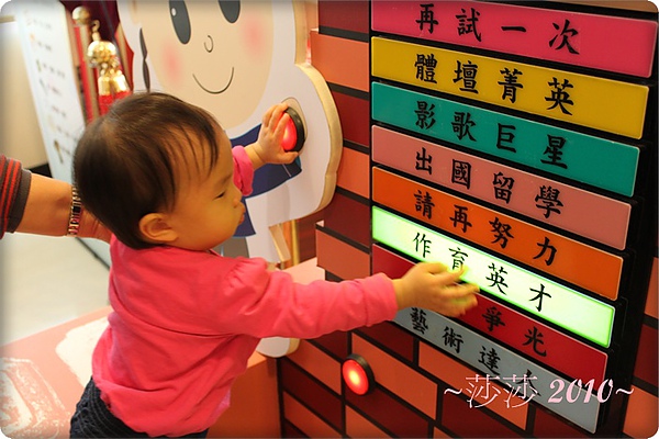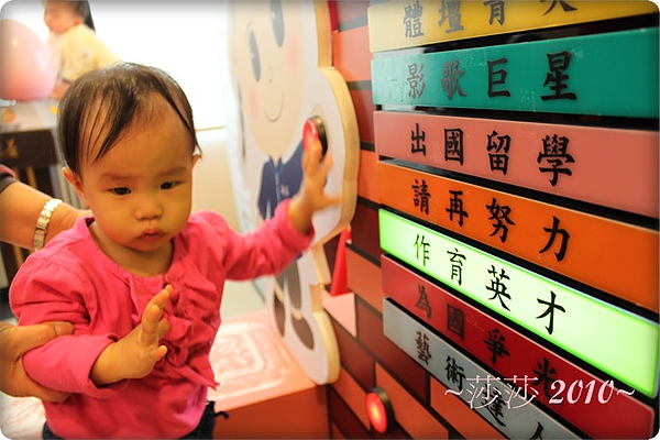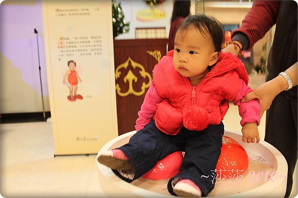 心情好了之後,媽咪趁一個抓周區沒人,趕緊放莎莎去玩一下。