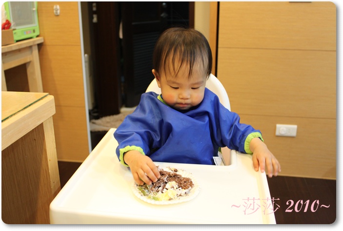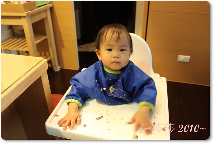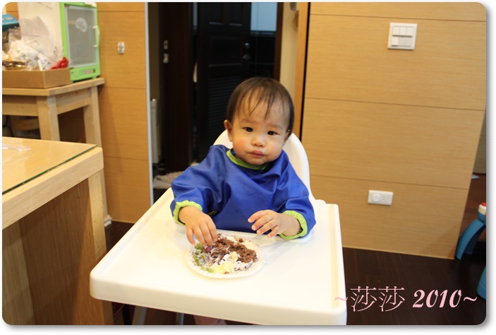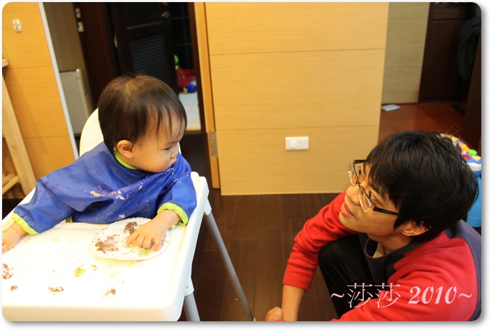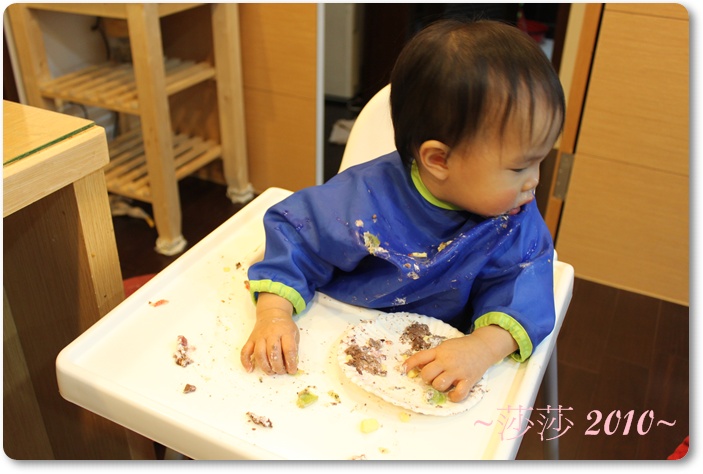 看莎莎吃東西就是很好吃的樣子,吃的到處都是,還好拔拔都會擦乾淨,哈哈。