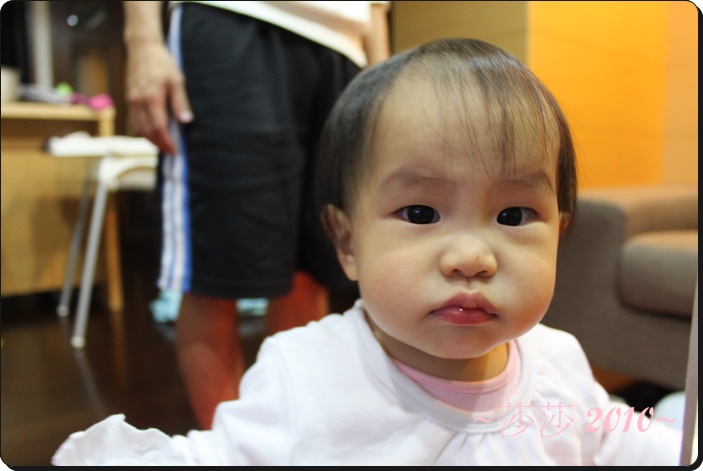 這個月莎莎跟大人的互動愈來愈多,是個調皮的寶貝蛋呢~~