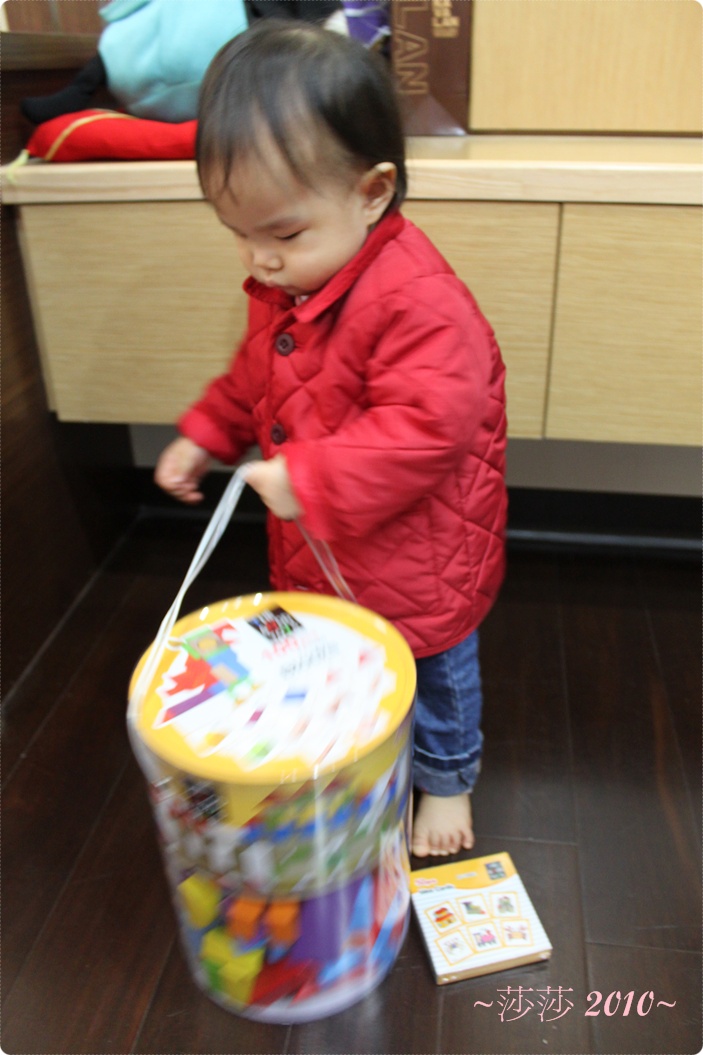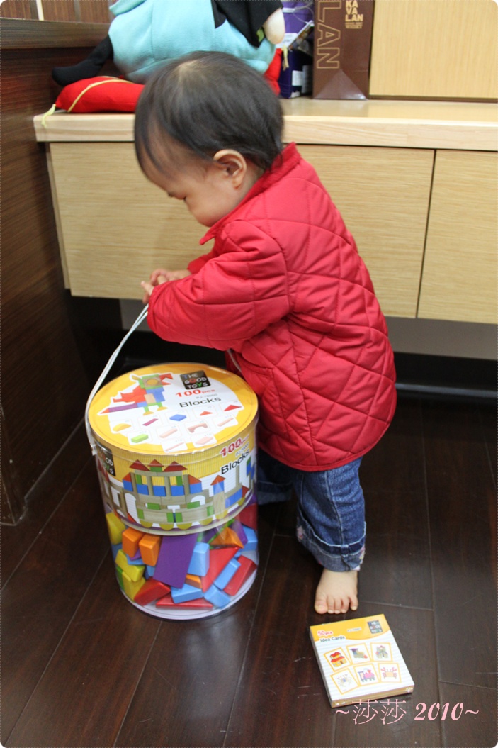 不過莎莎只會堆幾塊積木,大部分時間還是丟丟樂。