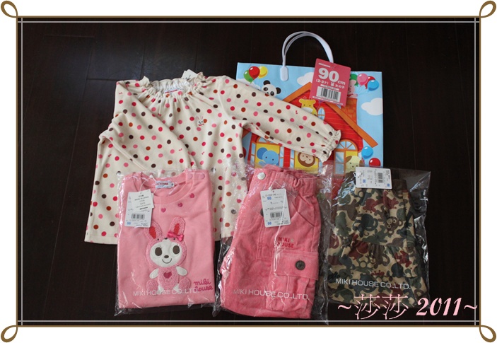 另外,mikihouse貴桑桑的衣服也有出福袋,上樂天幫莎莎定了一袋,運費自付,大約台幣500塊,其實不貴,因為請代買買也要代買費加國際運費,所以自己訂也蠻方便的。