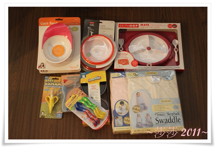 boon catch bowl,一樣不偏心買兩份。莎莎自己開始練習吃飯後很實用的道具,底盤吸的很牢固,小朋友不易翻倒;前面軟墊可以接住小朋友掉的食物,設計的真的很不錯,讚,好用。不過要注意食物要放涼了再放進塑膠製品,畢竟塑化劑還是令人怕怕的,當然莎莎吃的很好之後就會讓莎莎跟大人用一樣的碗盤了。