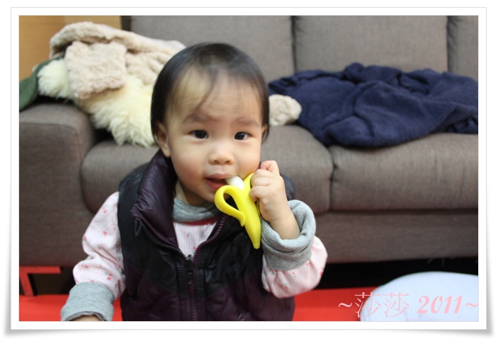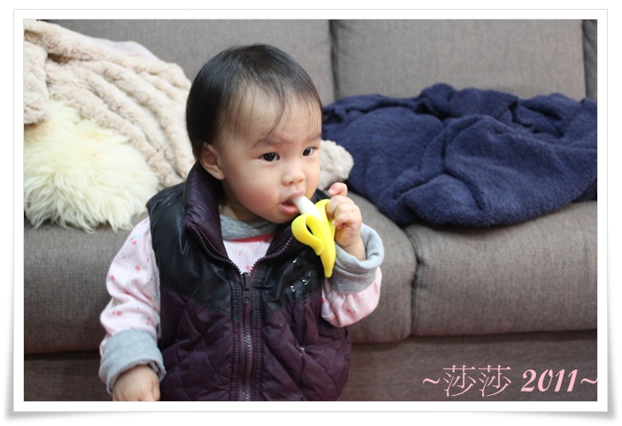 香蕉訓練型牙刷,有固齒器功能,又可以訓練寶貝刷刷牙,算是意外買到一樣好物。不過這隻香蕉牙刷是MIT,搞不好台灣就有了啦~~
