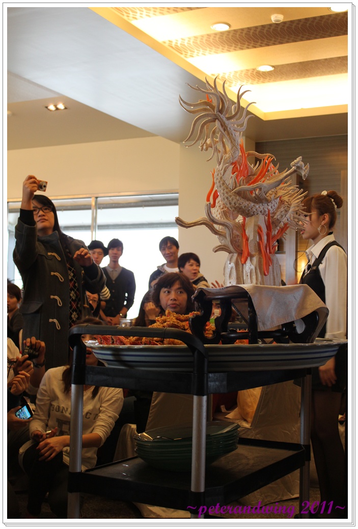 隔壁公司開了八桌,餐廳招待旭蟹,和一隻好大的雕刻龍,師傅手工真巧呢~~