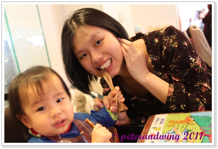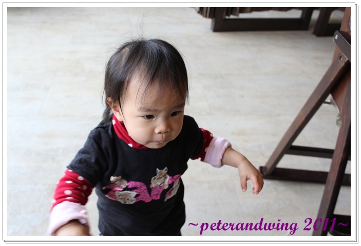 下次要來敎餐桌禮儀,不然拔拔跟在莎莎屁股後面跑會累死。