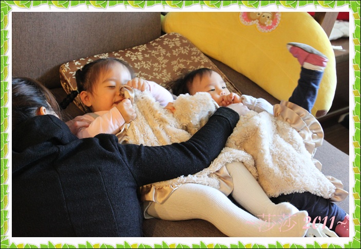 玫在哄芷妍睡,不過最想睡的應該是玫吧!莎莎還跑去"倒"熱鬧。