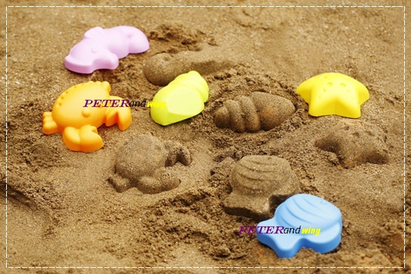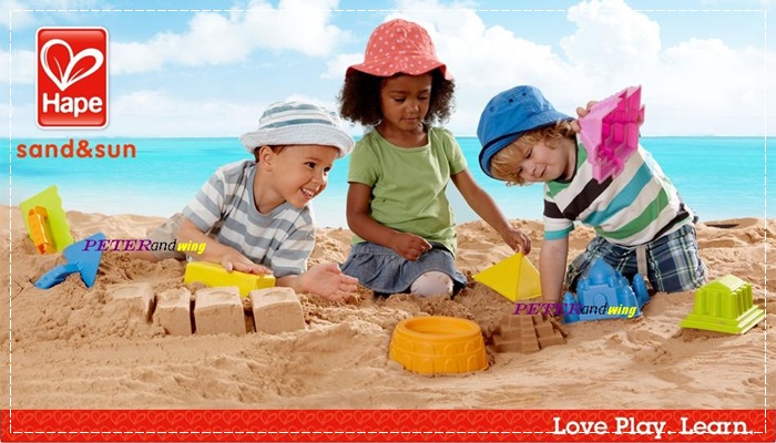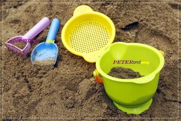 心裡思思念念去年夏天到海邊玩沙的幸福時光,今年還沒夏天,就先幫寶貝準備了一整套的hape玩沙玩具,寶貝超愛,現在是他們的洗澡玩具。