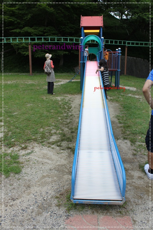 上面有免費的溜滑梯,帶比比及莎莎去玩滑梯。