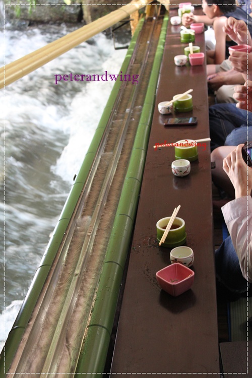 本來是要試試看川床料理,考量寶貝太小比較危險,不小心掉下去就糟了,所以改去看看價錢公道的流水麵。