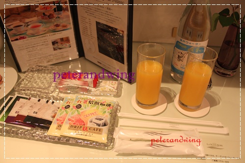 點心台,供應的是六甲山的水,招待果汁。