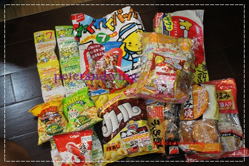 一大堆的零食,從costco、西松屋及路邊商店搜括而來。