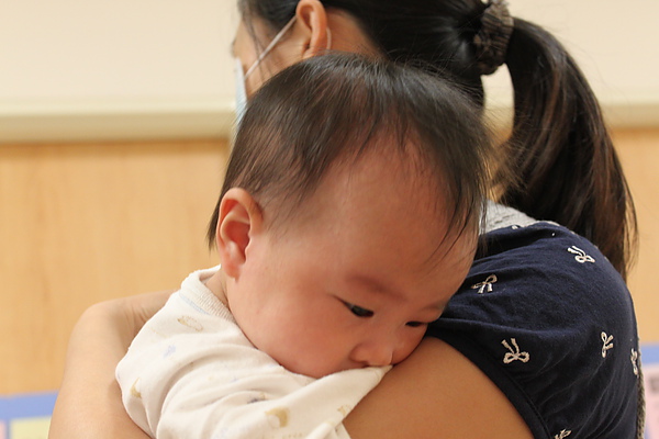 要走的時候,她忽然驚醒,因為第一次跟媽媽一小時的近距離接觸,讓他滿頭大汗,