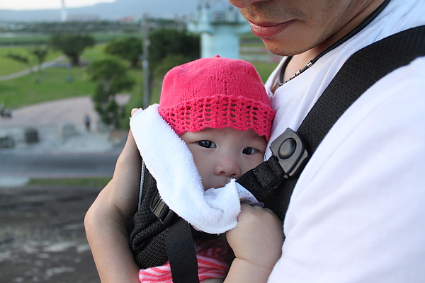 這是我們的第一次背巾散步喔~(為什麼堤防的風都這麼大阿><)
