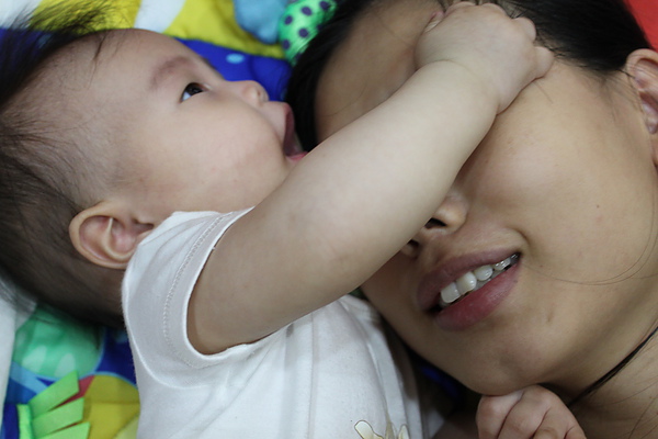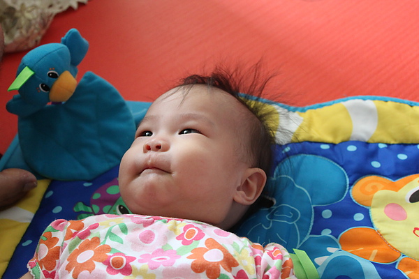 11.雖然一邊玩,一邊也會看媽咪在不在,會認人,媽咪不在會大哭~