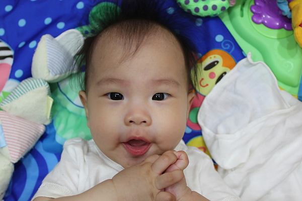 哇~~莎莎順利邁入六個月了,會愈來愈多技能,拔拔跟媽咪好愛你喔~