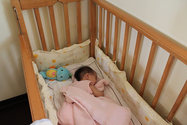 莎莎一直是睡在我們大床旁邊的嬰兒床,這樣媽咪才能隨時看到莎莎的動靜。